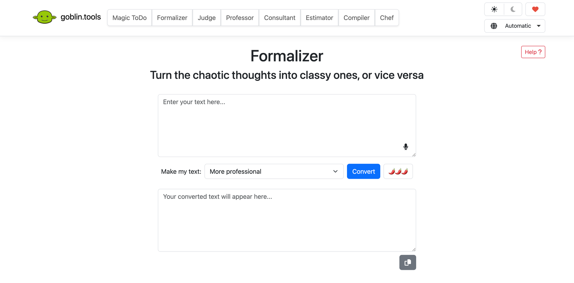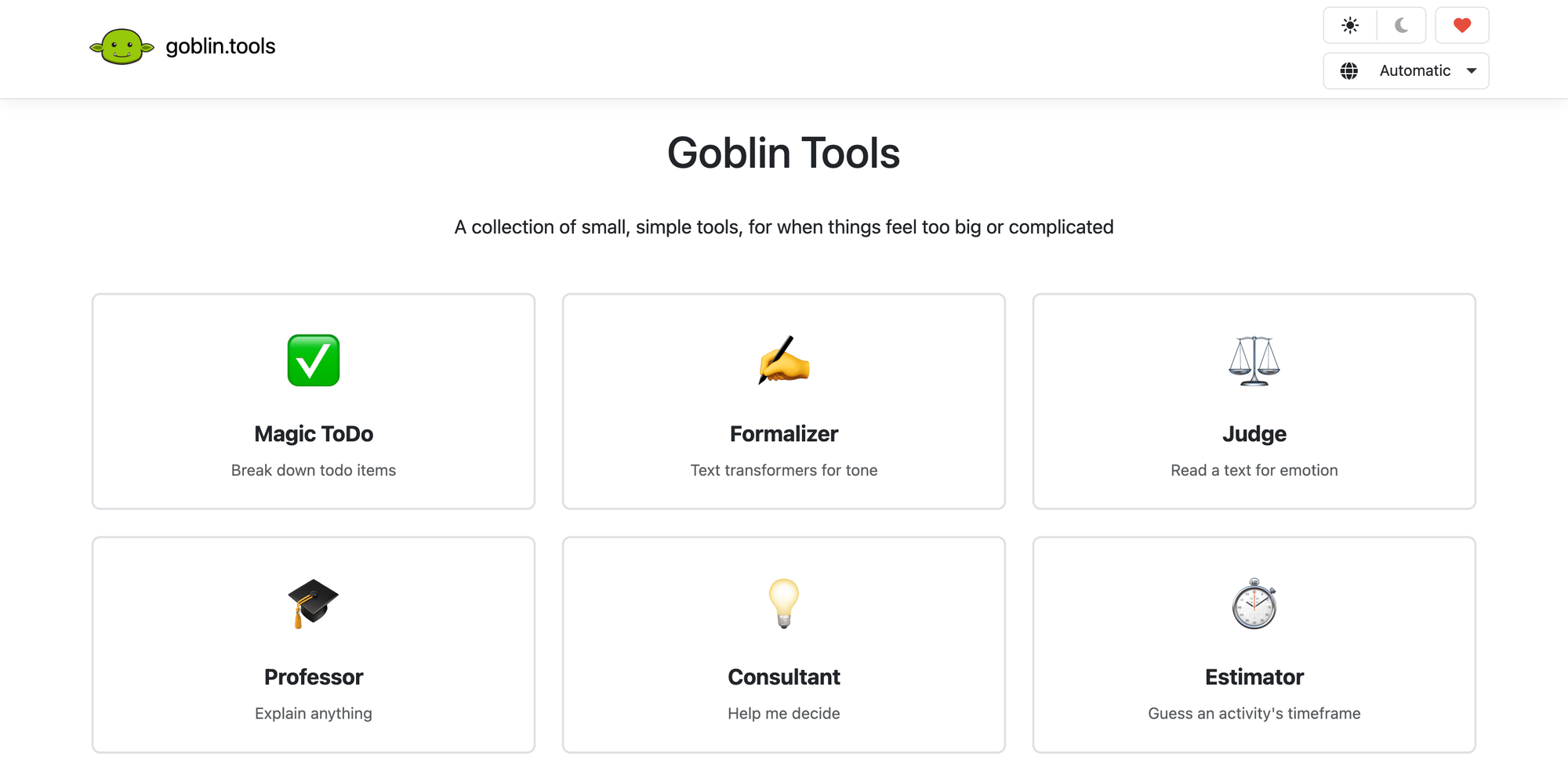 What makes Goblin Tools notable is its accessibility: completely free, no ads, no paywalls, no data harvesting. It exists to help people work more effectively without extracting payment or attention as the price of assistance.