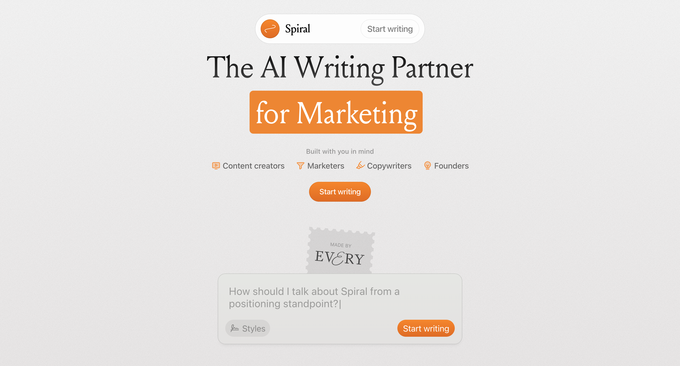 You can feed Spiral examples of your previous writing to help it match your established style. Reference your brand voice guidelines, show it past client communication, or provide samples of work you admire. The result is AI-assisted writing that maintains human authenticity rather than erasing it.