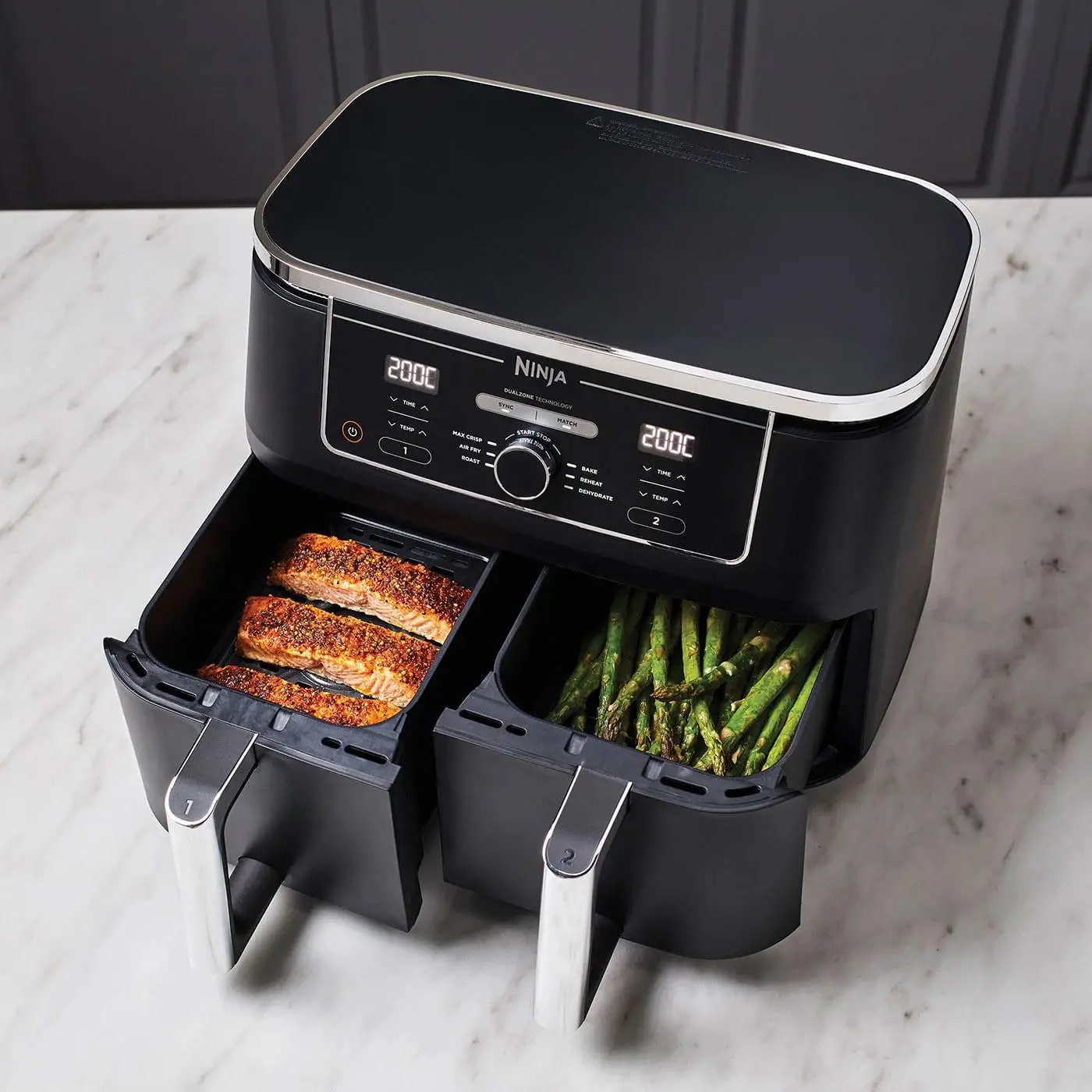 If you want more capacity or dual-basket cooking (to make proteins and vegetables at the same time), the Ninja Foodi DZ201 or DZ401 offer that capability in a slightly larger footprint.