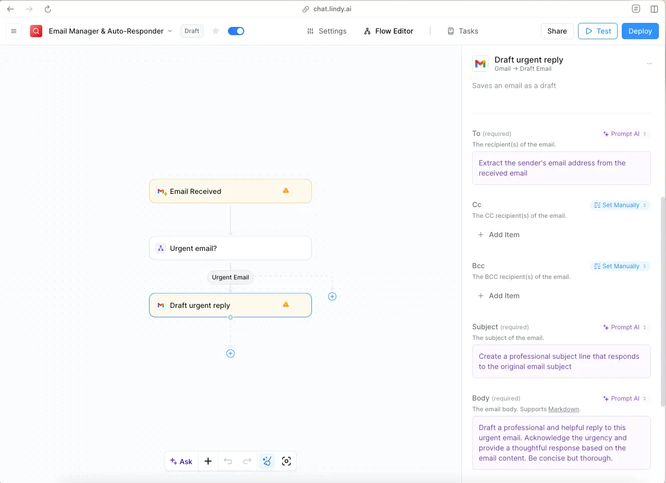 Setting up a Lindy agent is surprisingly straightforward. You describe what you want the agent to do in natural language, choose from over 5,000 integrations (Gmail, Slack, Salesforce, Notion, and many more), and the platform generates a working automation in minutes. I created an email triage agent that categorizes incoming messages, drafts responses, and escalates important items—all without writing a single line of code.