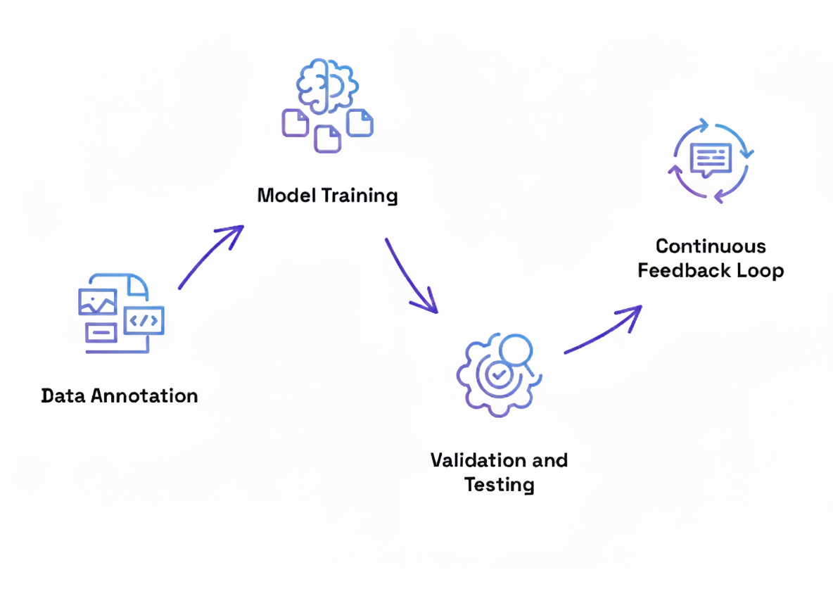 Users can accelerate learning by actively providing feedback when the device does something well or gets something wrong. Many devices offer a "training mode" during the first week where they're particularly attentive to feedback. The devices use parameter-efficient fine-tuning techniques like LoRA to continuously adapt on-device models based on individual interactions.