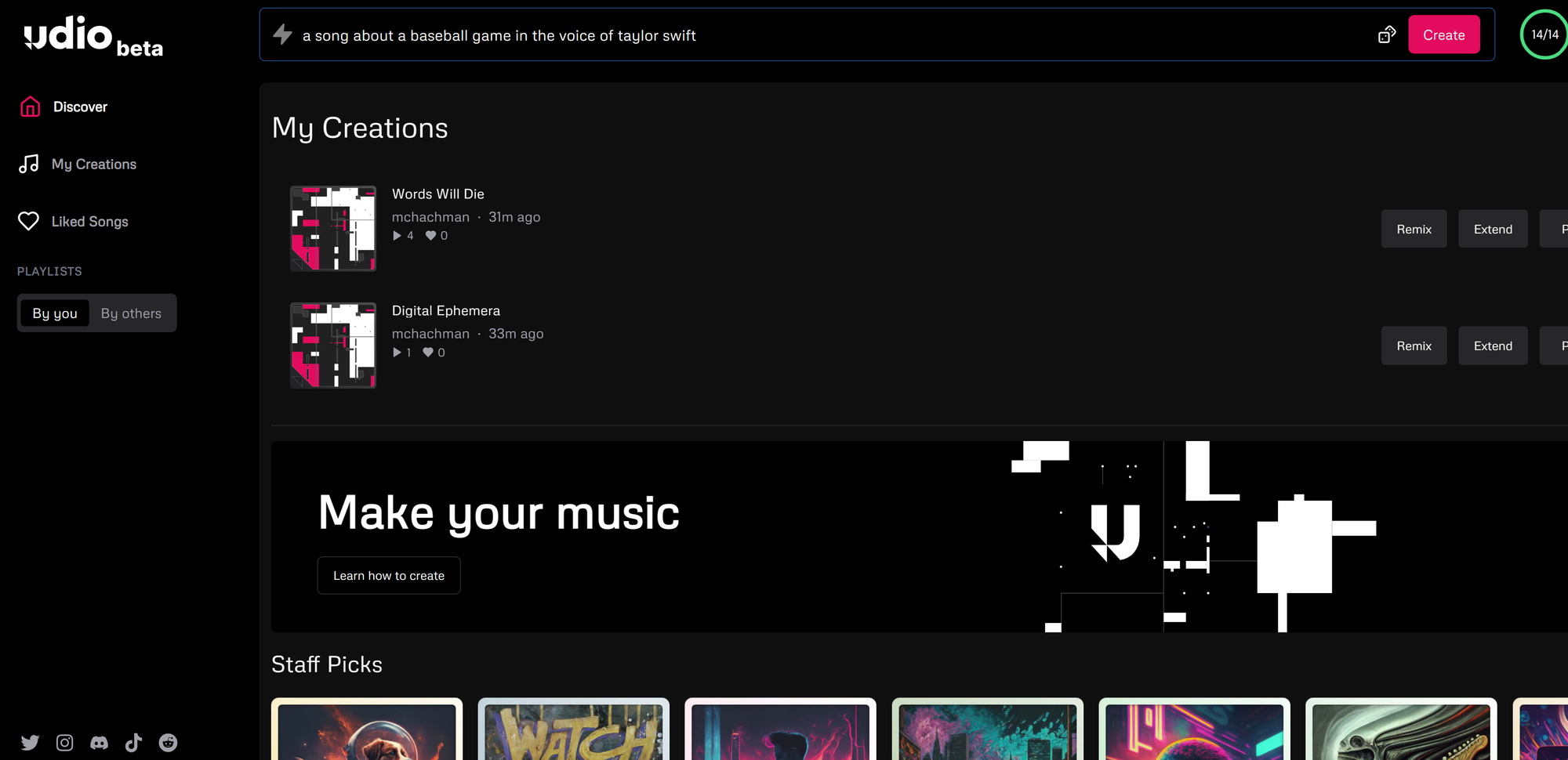 Sometimes too literal. When I ask Udio for "blues rock," it gives me BLUES ROCK. Like, textbook definition blues rock. Sometimes Suno's occasional genre-blending creates more interesting results.