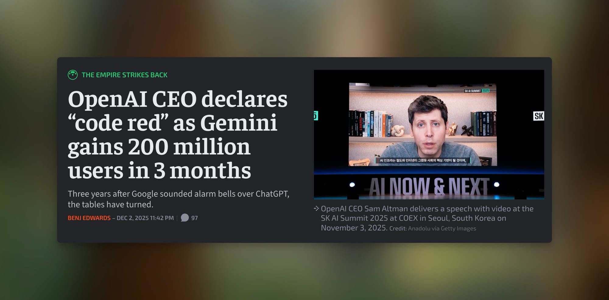 OpenAI Declares "Code Red" as Google Gemini Closes the Gap