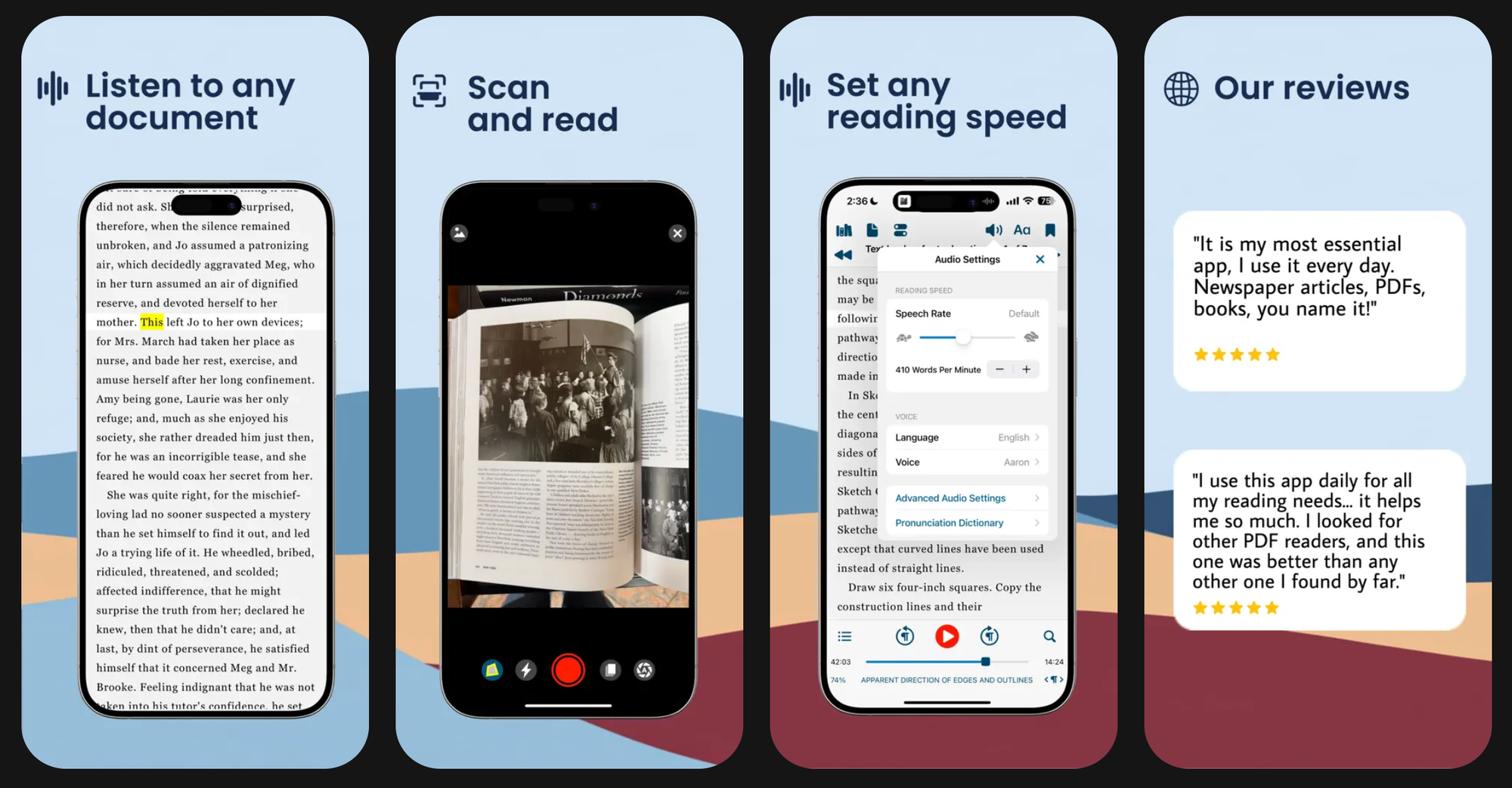 Voice Dream Reader ($14.99). Premium text-to-speech with 200+ voices. Better pronunciation than most free alternatives.