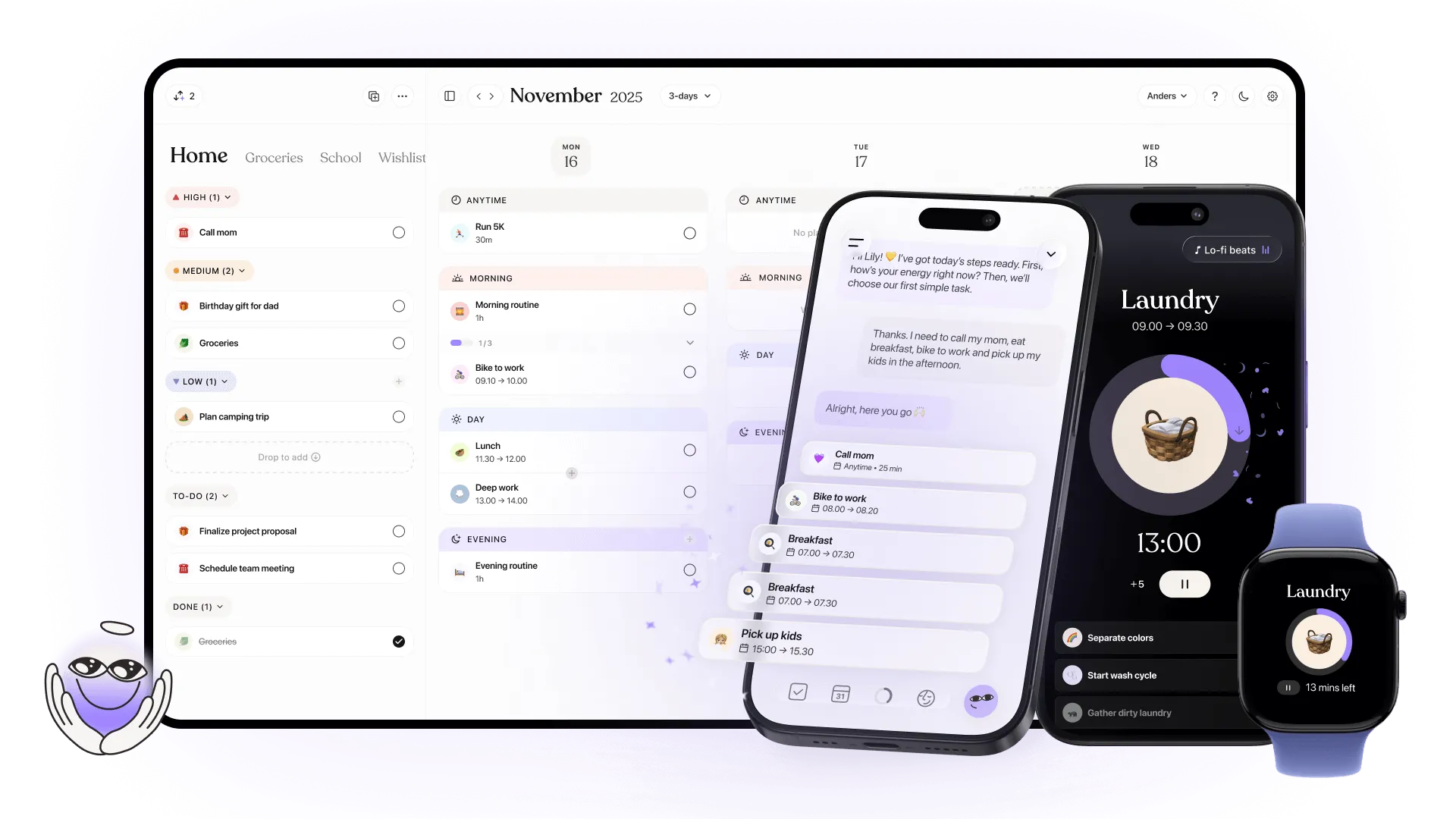 - AI Co-Planner breaks down vague tasks into actionable steps with time estimates