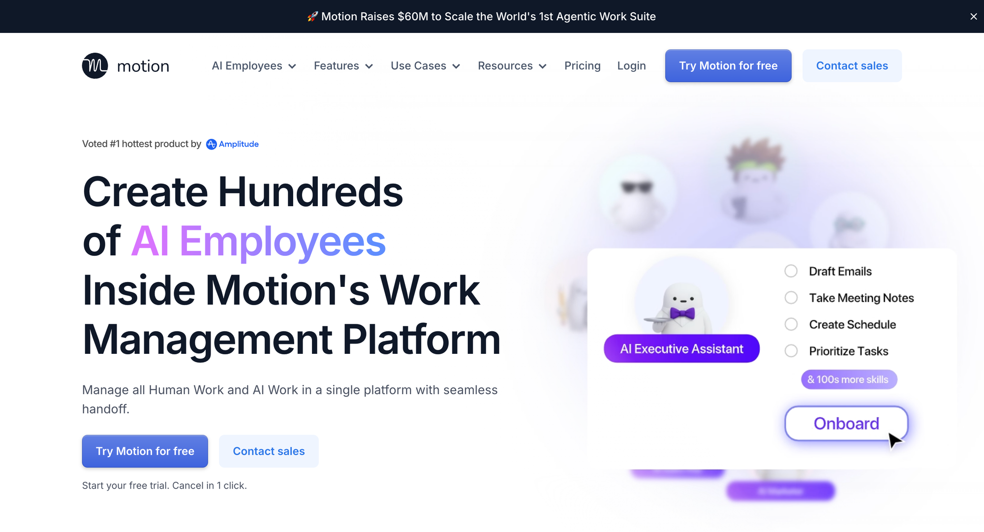 Motion takes a different approach to productivity by focusing on one specific problem: time management. The AI doesn't just list your tasks – it actively finds time in your calendar and schedules them, acting as an autonomous time manager.