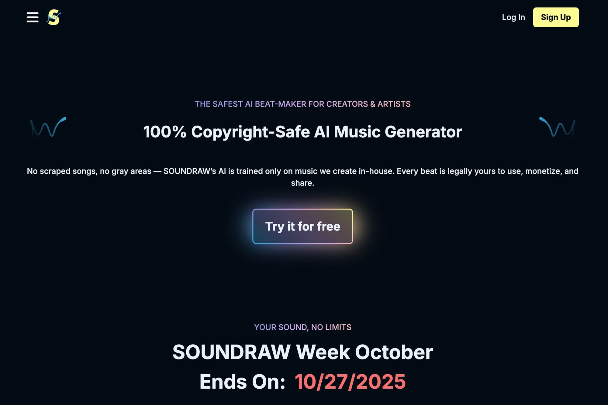 Soundraw stands apart with its emphasis on granular control and unlimited generation capabilities. Rather than relying solely on text prompts, the platform provides parameter-driven music creation with extensive editing tools. Soundraw - 100% Copyright-Safe AI Music Generator