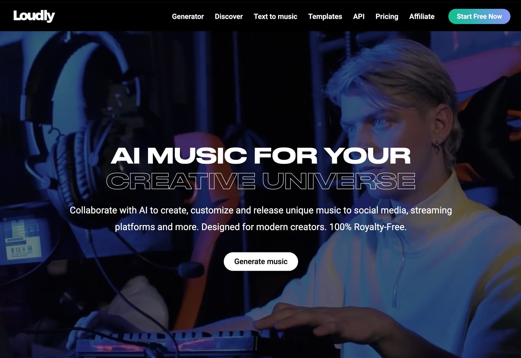 For creators needing occasional professional tracks without ongoing costs, Loudly's free plan delivers 25 quality tracks monthly with full commercial licensing. This provides genuine value for social media creators, small businesses, and hobbyists who don't require extensive music generation.