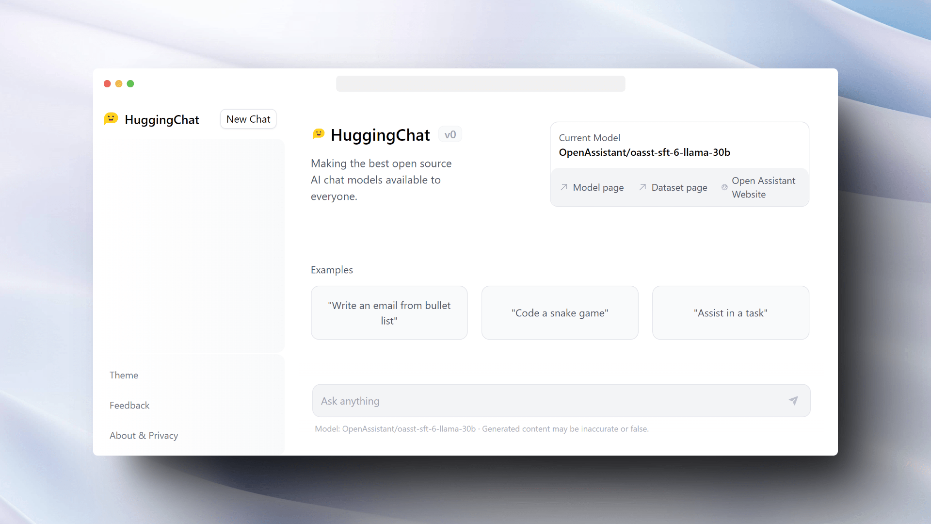 HuggingChat is different from the others. It's built on open-source models (Llama, Mistral, etc.) and doesn't track your conversations or require an account. If privacy matters to you, this is interesting.
