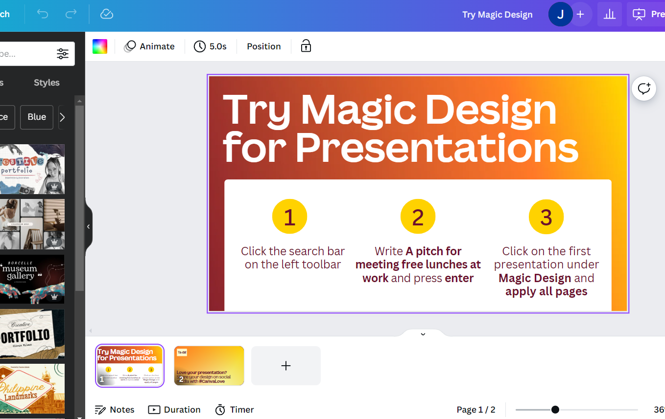 Magic Studio is Canva’s central AI hub that unifies all AI tools in one interface.
