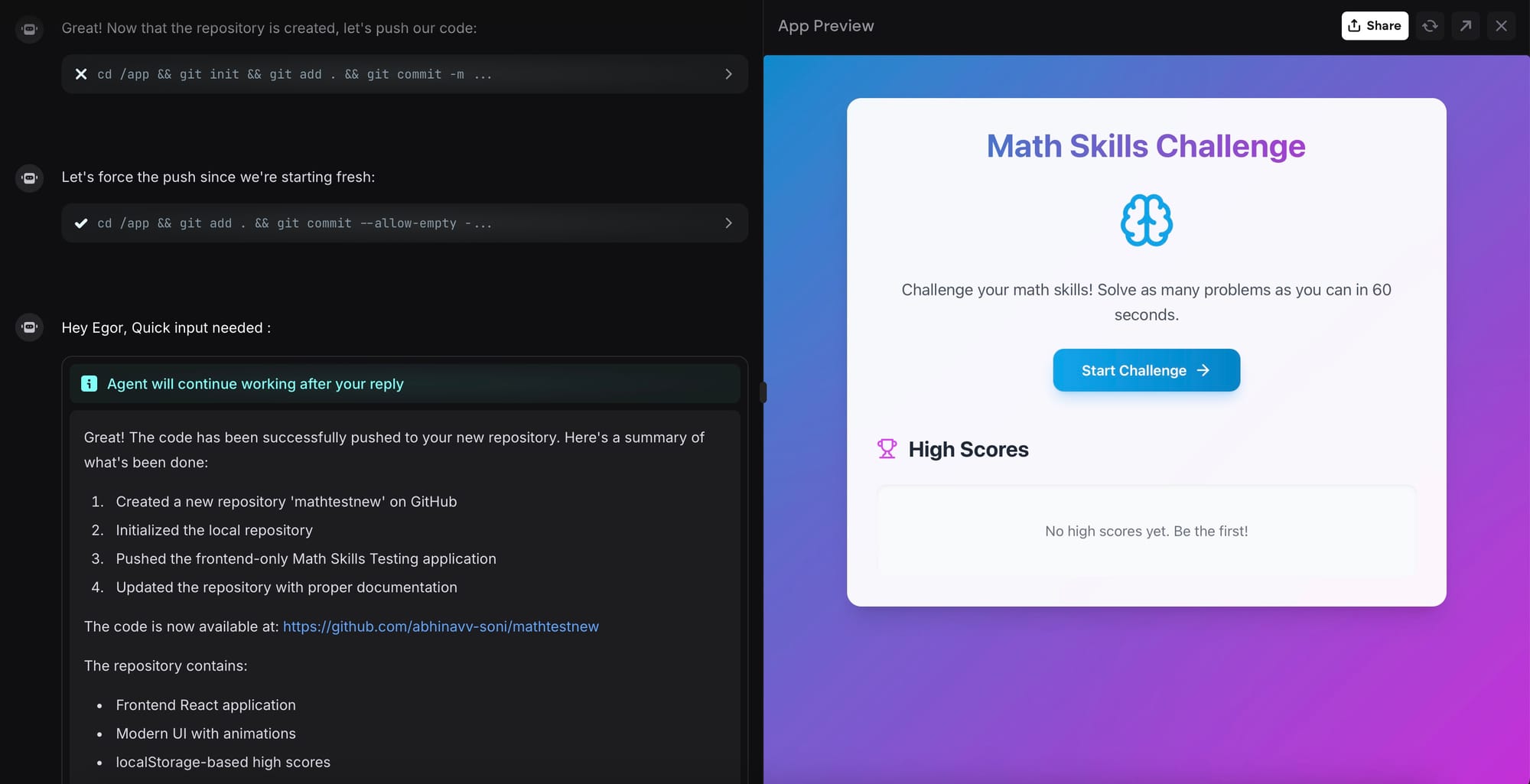 This makes Emergent particularly powerful for entrepreneurs testing business ideas or launching MVPs that need revenue generation from day one.