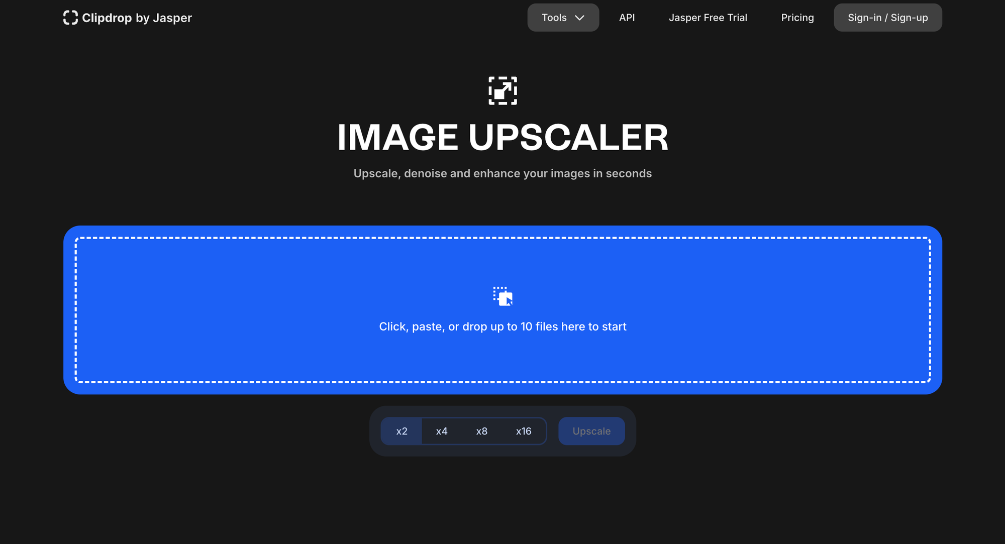 Clipdrop offers one of the cleanest web interfaces I tested. You upload an image, and within seconds, you get a crisp upscaled version. No account required.