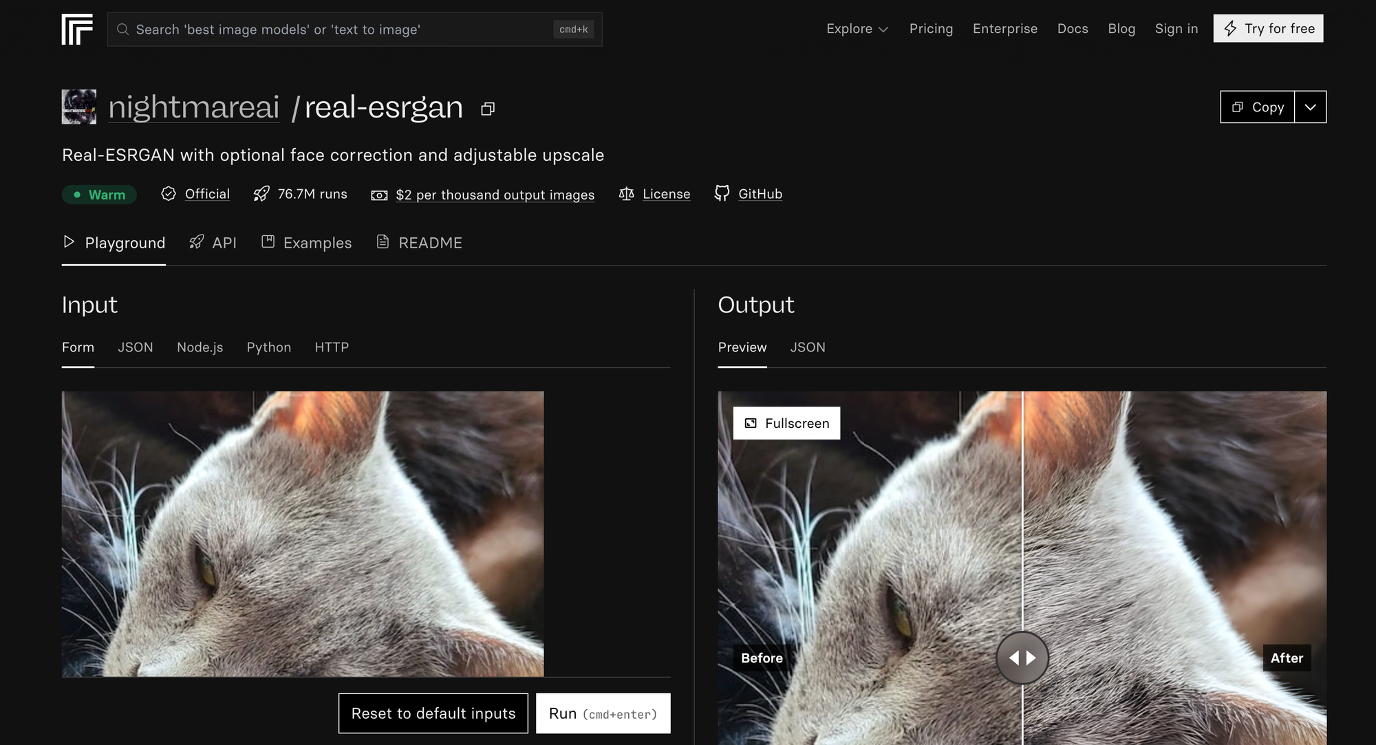 Best for: Developers, tech-savvy users, people who need maximum control, anyone building upscaling into workflows or scripts.