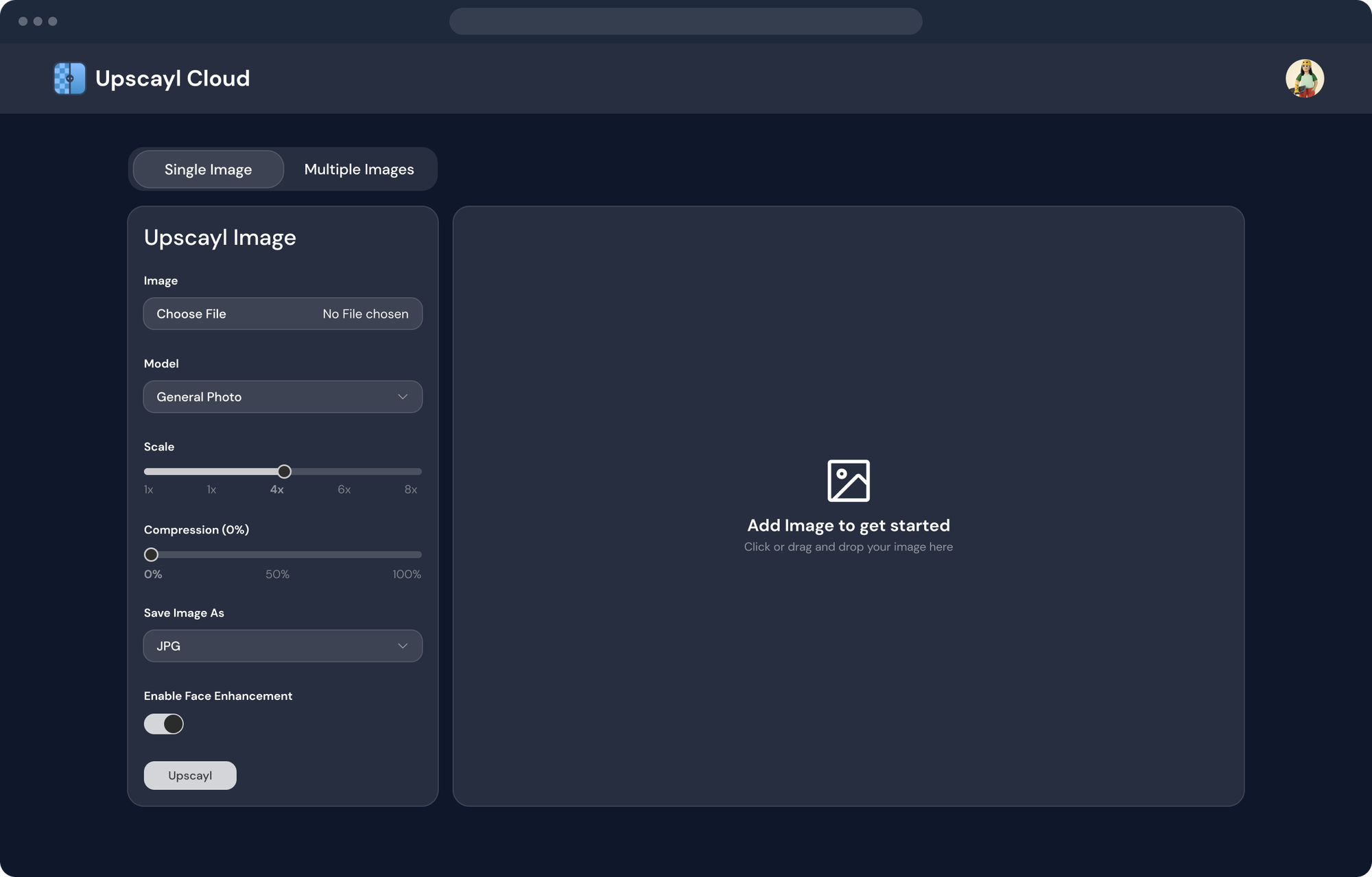 Perfect for high-quality photo and portrait upscaling without privacy concerns.