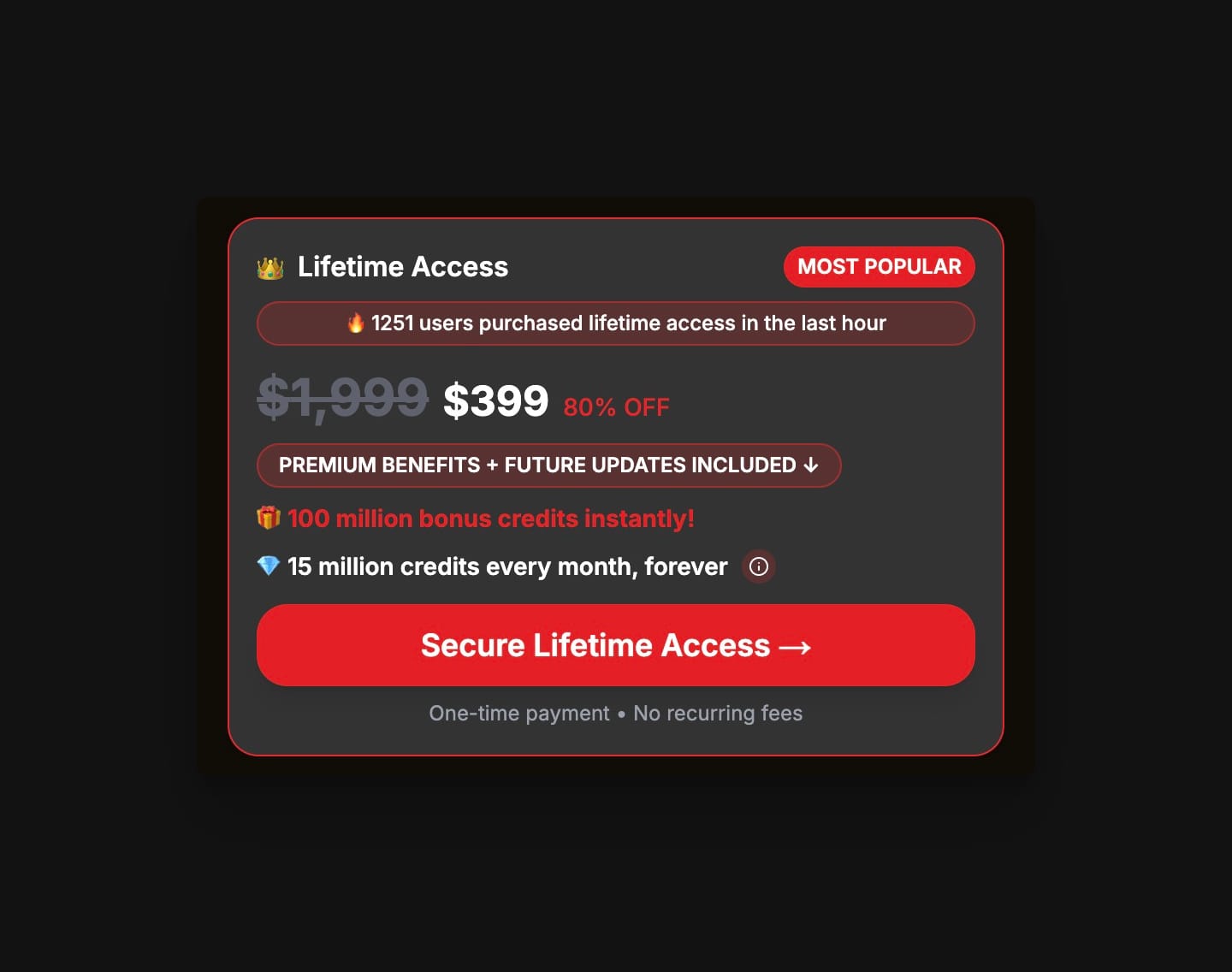 Massive Cost Savings Replacing $180+ monthly subscriptions with a single $30 payment represents significant savings for users of multiple AI tools.