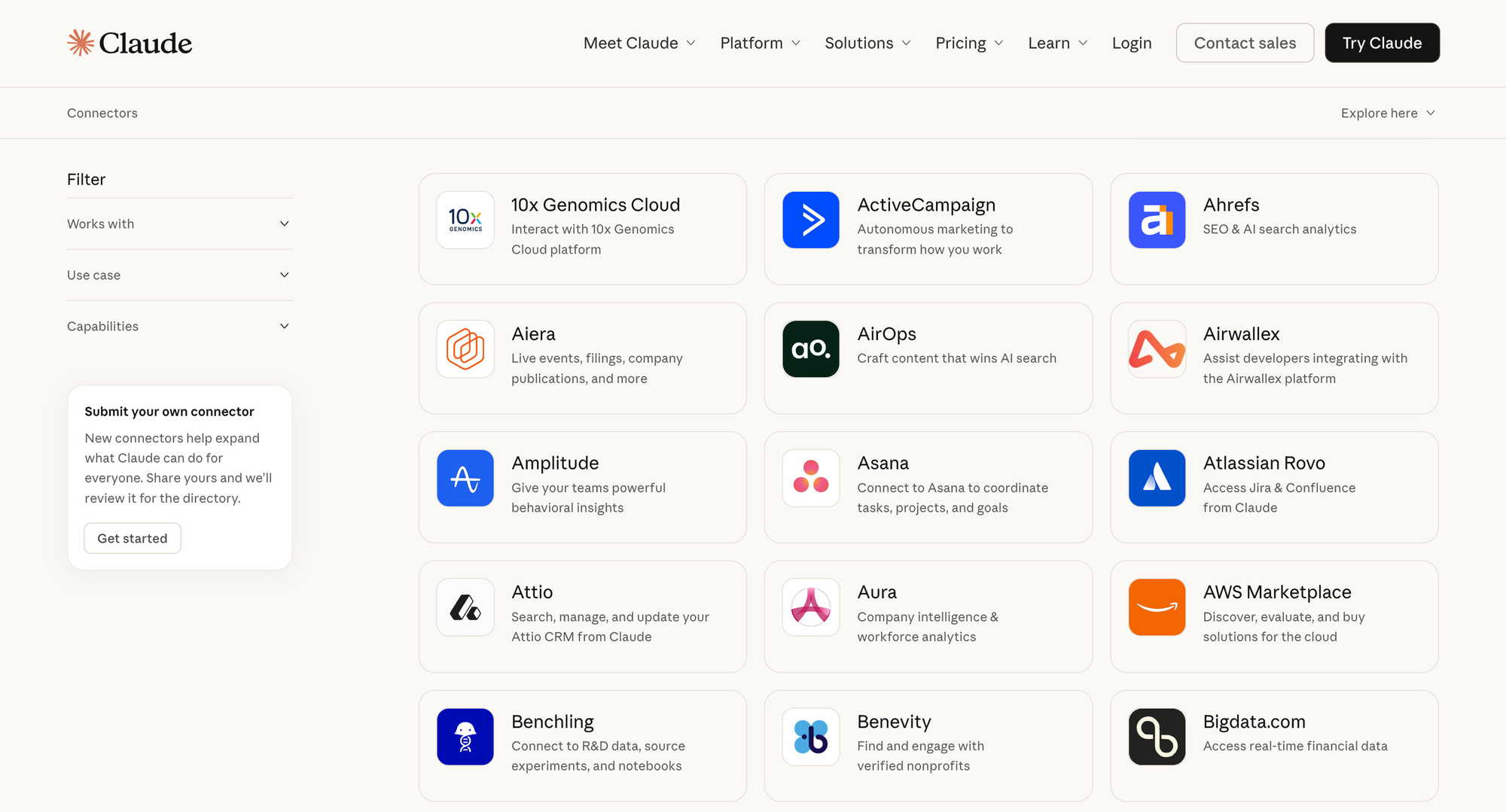 | Pro Plan | $20/month | Full access to directory connectors plus the ability to add custom connectors via MCP server URLs. | Power users and professionals who need advanced integrations |