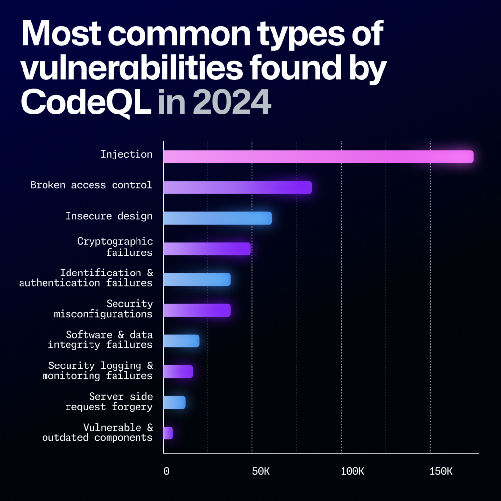 The same Octoverse report that documented record commit volumes also registered a security signal that demands analytical attention proportional to its severity. Broken Access Control overtook Injection as the most common CodeQL security alert in 2025, flagged in over 151,000 repositories, representing a 172 percent year-over-year increase. Much of this growth traces directly to misconfigured permissions in CI/CD pipelines and AI-generated scaffolds that omit critical authentication checks – a pattern consistent with what research on AI code generation would predict.