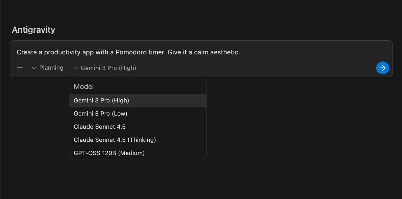While Gemini 3 Pro is the flagship model, Antigravity supports:
