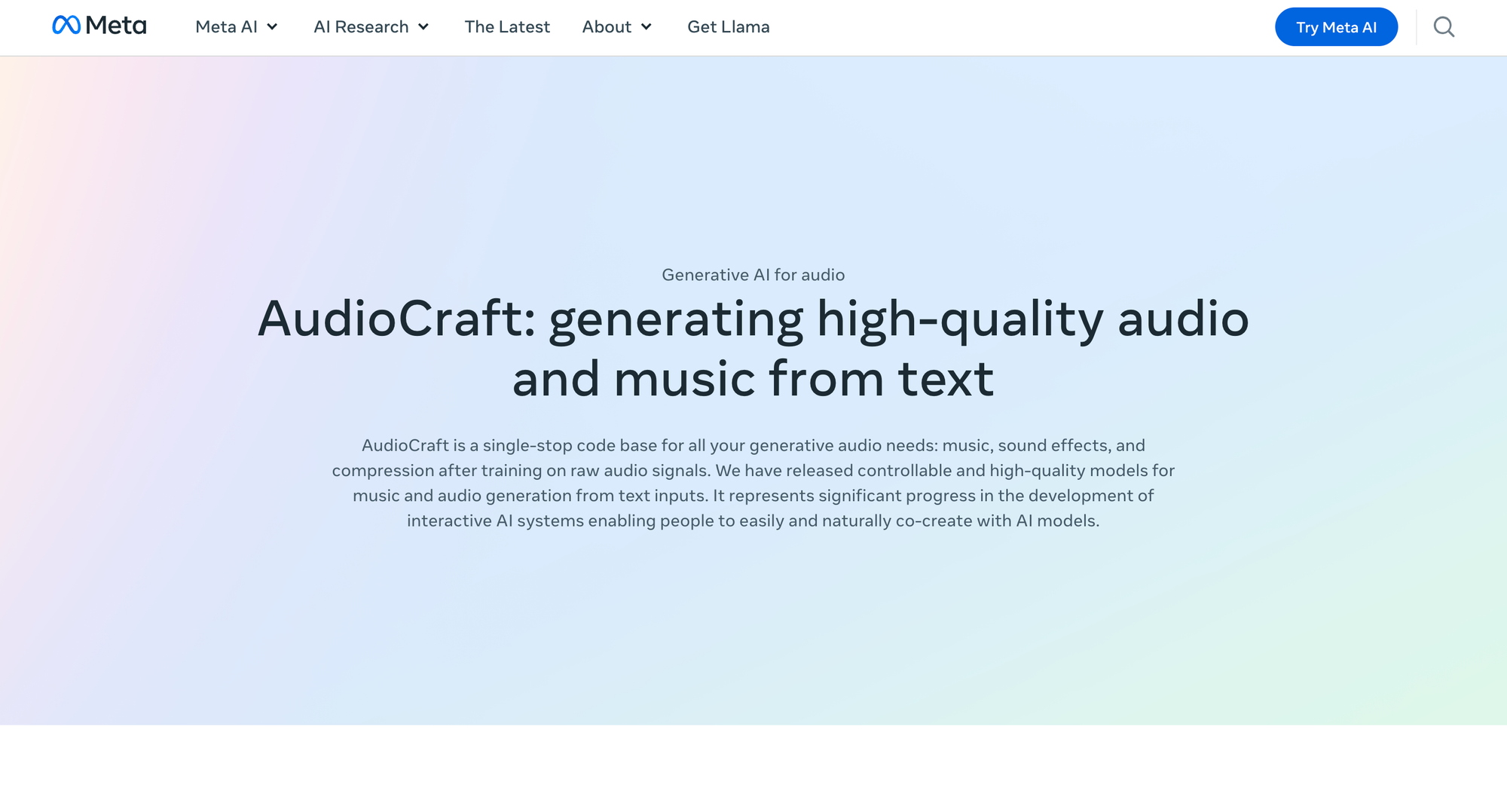 Meta has released AudioCraft, its open-source music generation framework. OpenAI has not released a dedicated music tool to consumers but has the underlying capability. Stability AI's Stable Audio is another active player in the space.