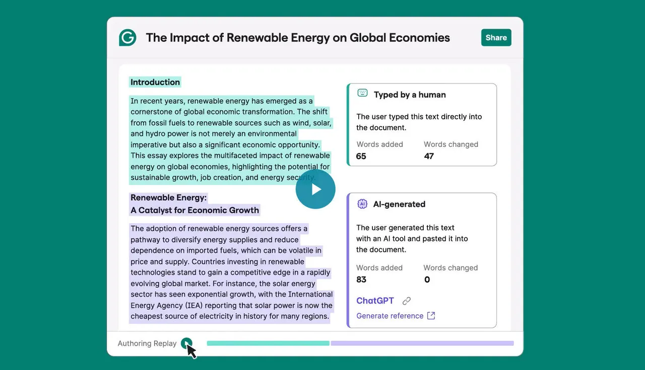 How it works: Upload or paste a complete document, and Grammarly provides comprehensive feedback on organization, argument strength, readability, and areas needing improvement.