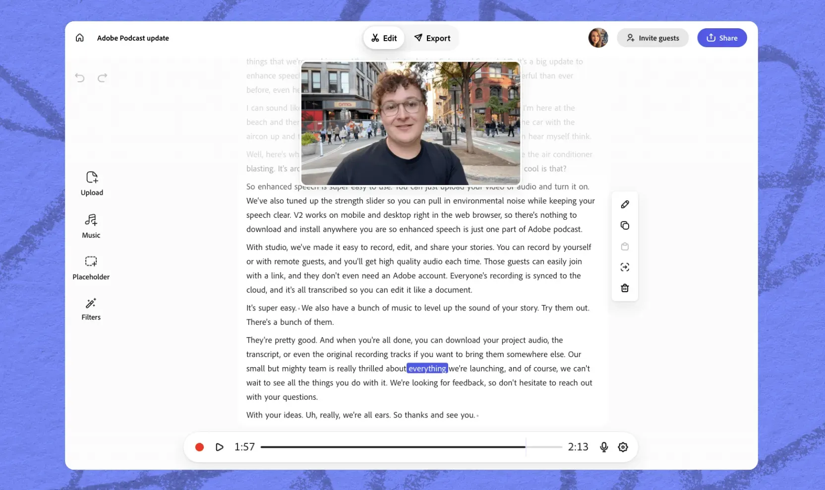 Adobe Podcast Studio integrates AI editing with Adobe's broader creative ecosystem. The transcription technology matches what professional editors use in Premiere Pro, but the interface is designed for podcasters who want to cut, copy, and paste audio like text. For creators already in Adobe's ecosystem, the integration is seamless.