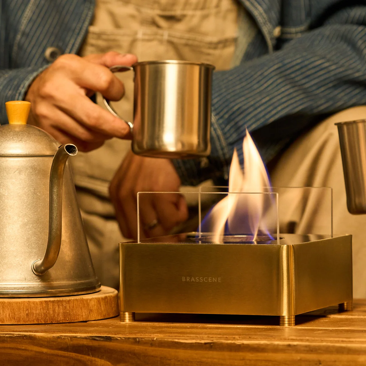 The Harmony Flame is a portable fireplace crafted by artisans who typically make musical instruments. That pedigree shows in the meticulous attention to detail. The brass box burns bioethanol, an eco-friendly fuel that produces real flames without smoke, odor, or the mess of traditional fireplaces. Light reflects off the polished brass surface, creating shifting patterns as the flames dance. Every moment is unique, organic, unrepeatable.