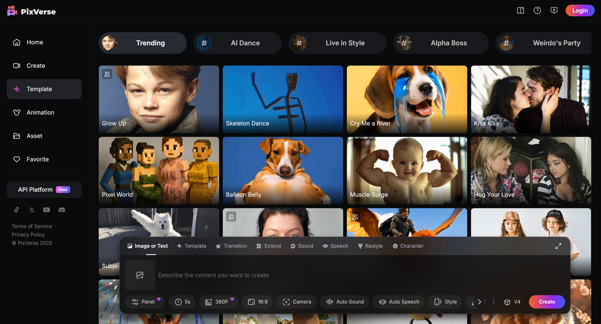 Pixverse comes packed with ready-to-use templates for different verticals — product showcases, social media reels, cinematic intros, educational explainers, and more. You also get access to a growing asset library: stock music, SFX, transitions, background loops, and editable themes.