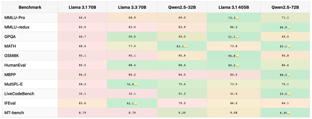 However, Qwen 2.5 comes with a secret weapon: Qwen2.5-Coder, a specialized variant that absolutely crushes it on coding benchmarks. The main Qwen 2.5-72B-Instruct model scores 88.2 on MBPP (another coding benchmark), benefiting from the technical breakthroughs developed for that coder-specific model.