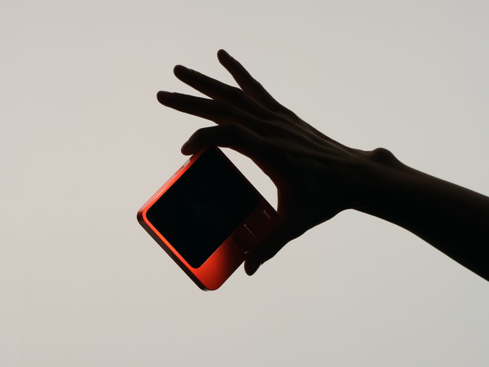 The device measures just 3 inches by 3 inches and weighs 115 grams, making it genuinely pocket-sized. Its most distinctive feature is its bright orange color, though the design philosophy emphasizes both form and function. The 2.88-inch touchscreen serves as the primary interface, complemented by an analog scroll wheel that provides tactile feedback for navigation.
