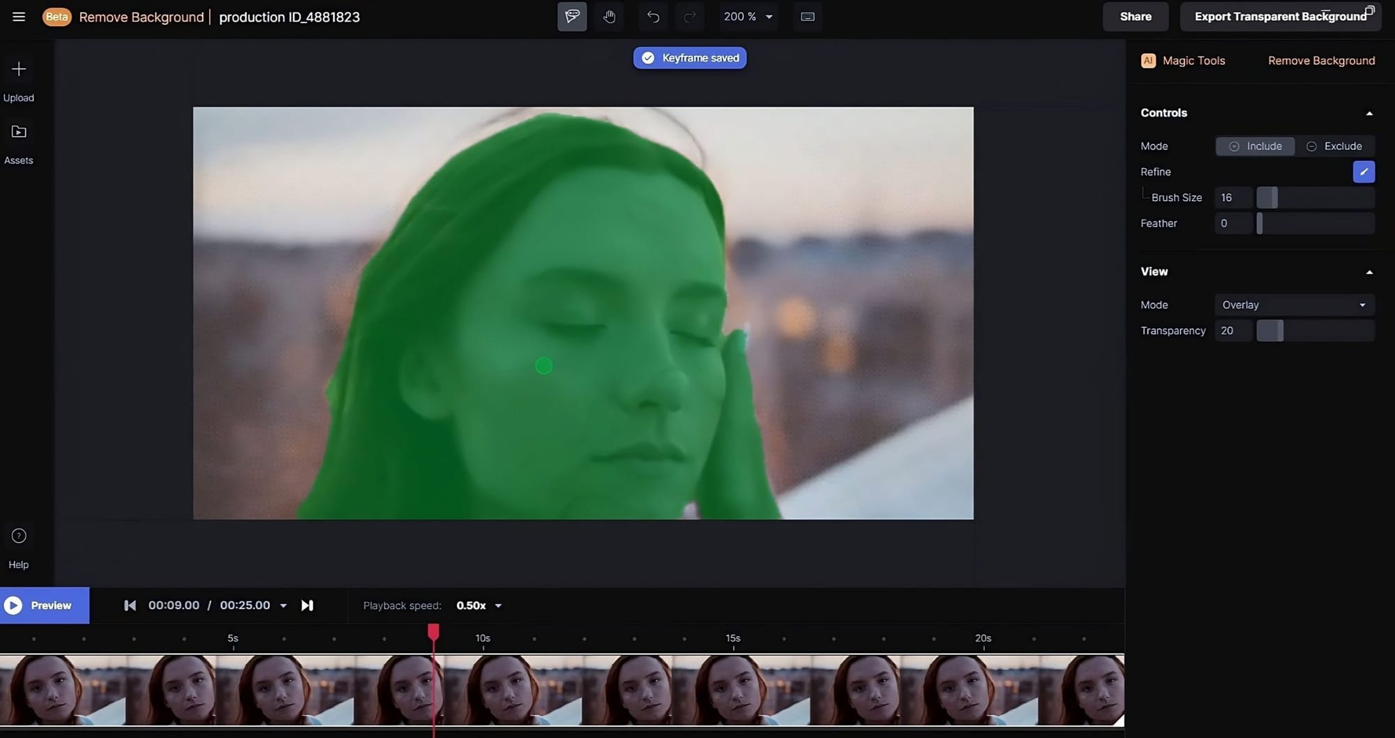 Professional-quality green screen removal that handles edges, transparent objects, and motion blur better than most traditional tools.