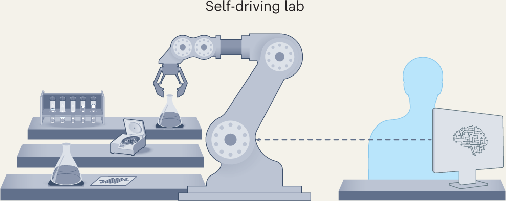 A self-driving laboratory is a research system that combines AI decision-making with robotic experimental hardware in a closed loop. The AI proposes an experiment, the robotic system executes it, results flow back to the AI, and the AI proposes the next experiment without human intervention between cycles. The most capable examples automate the entire scientific method: hypothesis generation, experimental design, execution, data analysis, and hypothesis updating. The name was coined by analogy to autonomous vehicles.