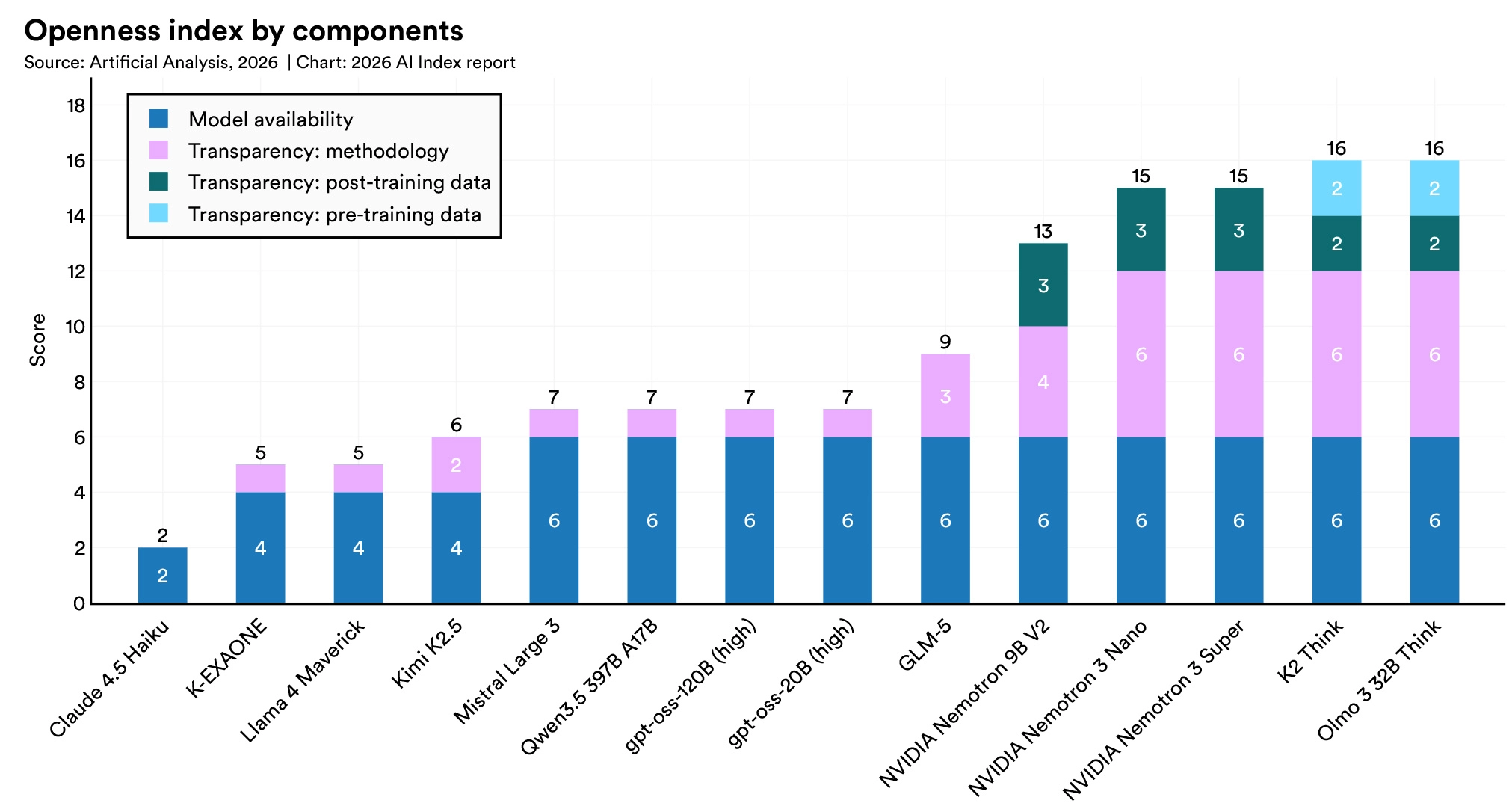 The 2026 report notes that OpenAI, Anthropic, and Google have all stopped disclosing training dataset sizes, parameter counts, and training duration for their most capable models. Of the 95 most notable models released in 2025, 80 were released without their training code.
