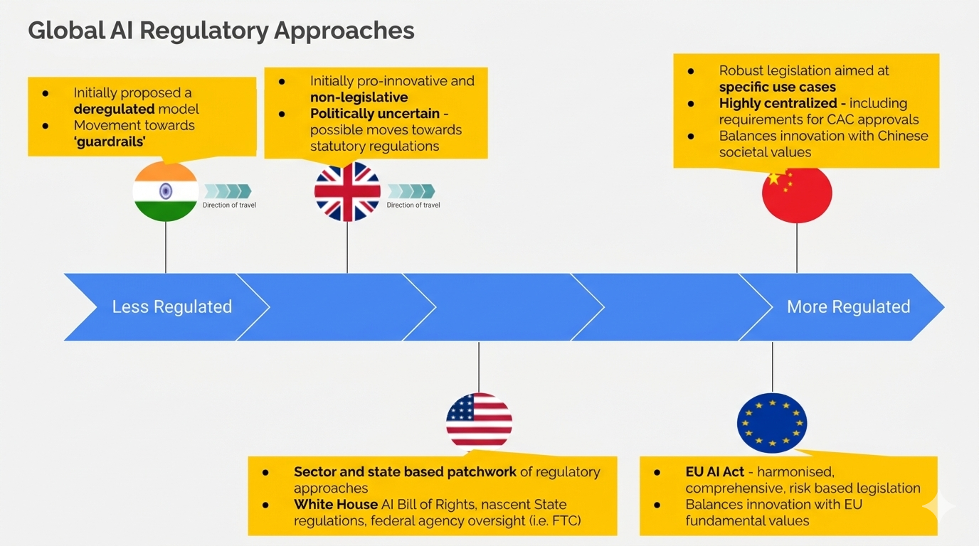 This global convergence around risk-based frameworks — high-risk categories, proportionate penalties, transparency and documentation requirements — reflects a deliberate approach by regulators who studied the EU's model and borrowed its logic. The practical effect for multinationals is that while specific requirements differ, the underlying architecture of compliance is increasingly similar across jurisdictions.
