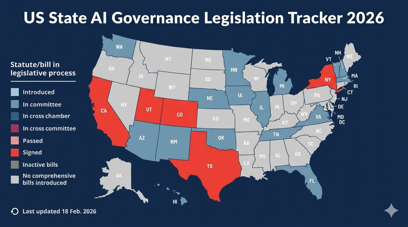 Multiple laws with hard enforcement teeth now have effective dates in 2026, and "tracking bills" is no longer a sufficient strategy for any company deploying AI in a meaningful way.